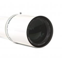 The TSA-120 is equipped with an air-spaced ED triplet apochromatic lens with 120 mm diameter (900 mm focal length and F/D 7.5), mounted in a 3-element barrel. The latter ensures good stability of the optomechanical chain in the face of usual transport constraints and significant variations in operating temperature. It has a retractable dew shield and the length of the tube does not exceed 990 mm for a moderate weight of 6.7 kg.