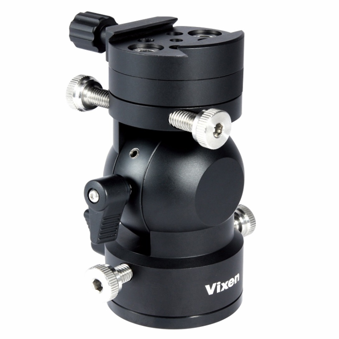 Am Kopf der Feinverstellung befindet sich ein Schnellverschluss, der mit der Vixen Schnellwechselwinkelplatte oder dem Arca Swiss System kompatibel ist