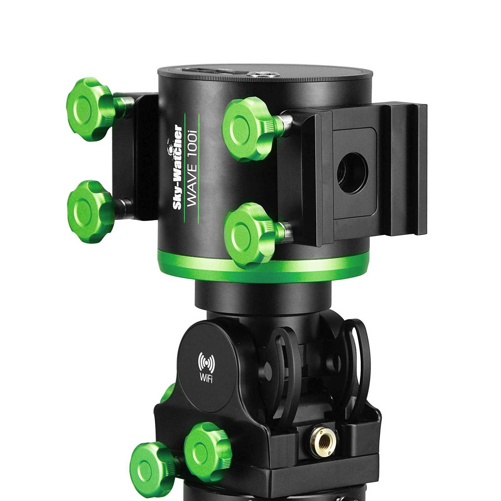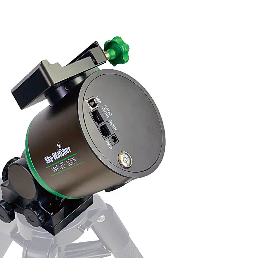 Die neue Sky-Watcher Wave 100i Montierung besticht durch eine kompakte, spielfreie Mechanik gegenüber herkömmlicher Montierungen. Sie kann ohne Gegengewicht bis 10kg Instrumentengewicht belastet werden und das bei einem Eigengewicht des Kopfes von nur 4,3kg! Mit Gegengewicht kann die Wave 100i sogar 15kg tragen.