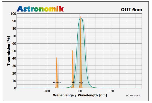 Transmission von nahezu 100% im Bereich der OIII Linie liefert der