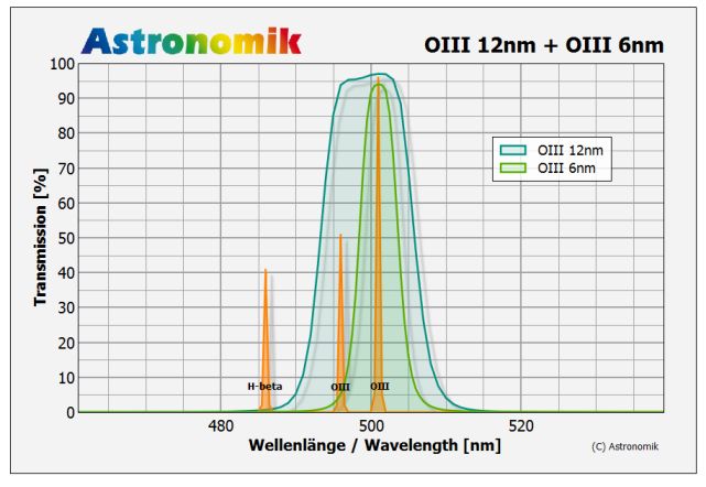Transmission von nahezu 100% im Bereich der OIII Linie liefert der